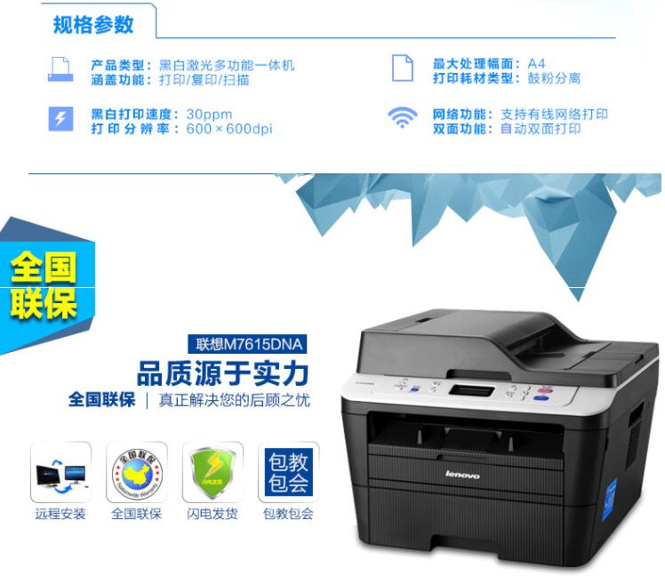 聯(lián)想M7615DNA/M7625DWA網(wǎng)絡(luò)雙面打印自動連續(xù)復(fù)印掃描激光一體機(jī)